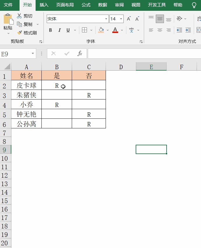 我们经常会遇到输入☑符号,在单元格内输入“R”,然后将字体修改为“Wingdings 2”即可。